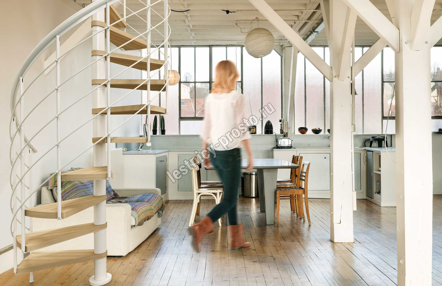 Винтовая лестница Montreal STYLE белая, d140 см, h279,5-305,5 см