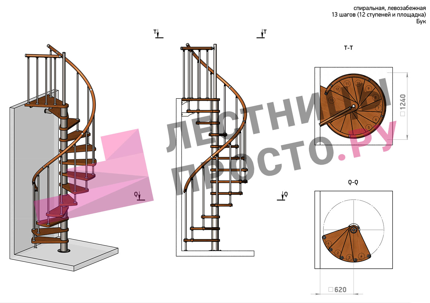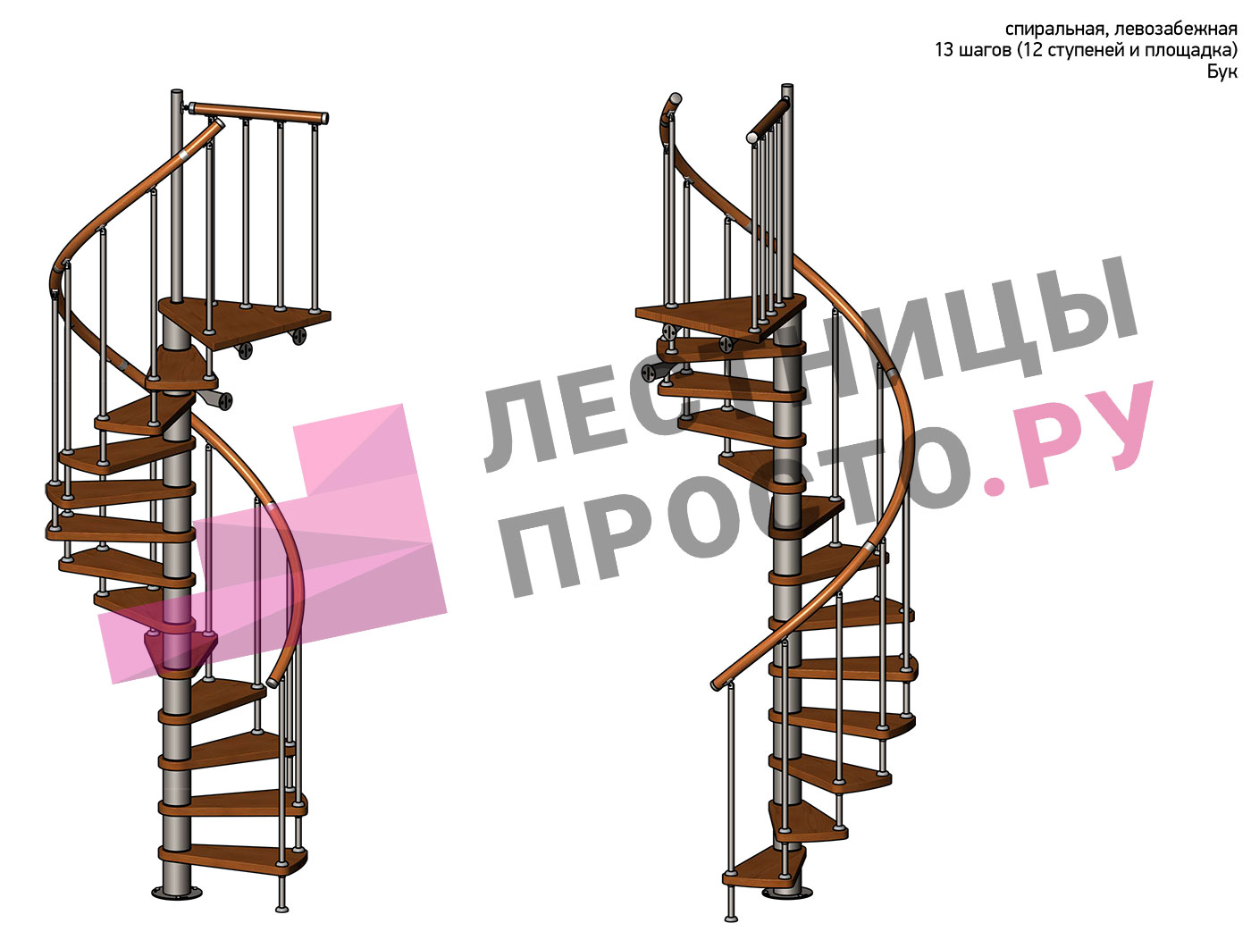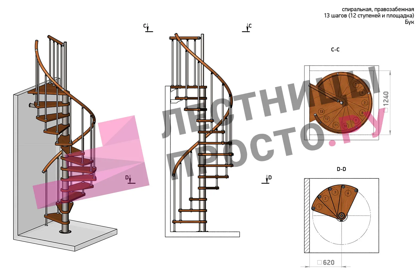 Правая, d=120см, 12 ступеней + площадкам
