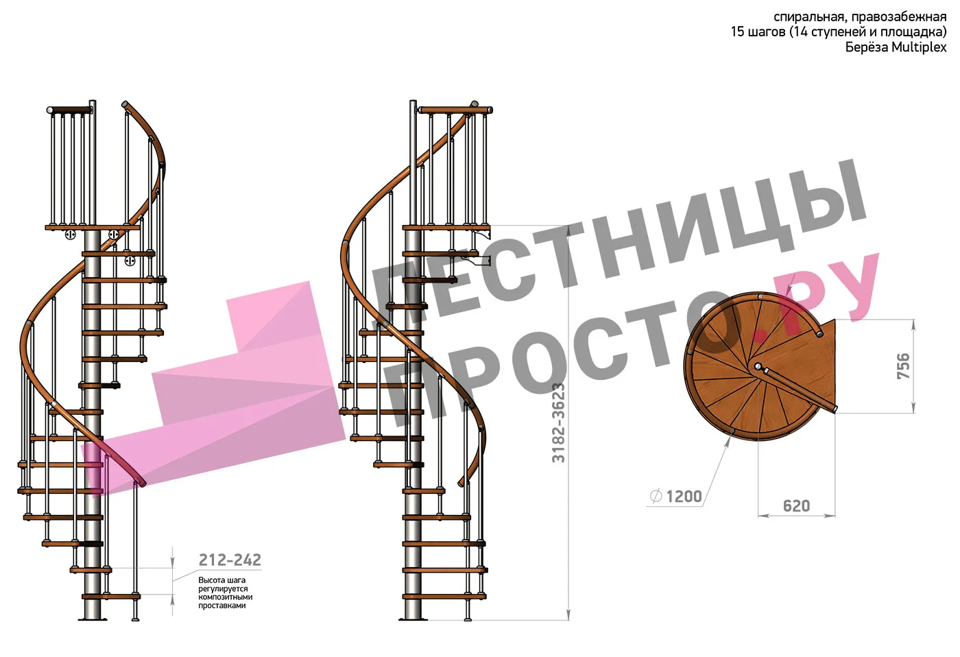 Высота лестницы 3182 - 3623 (14 ступеней) мм