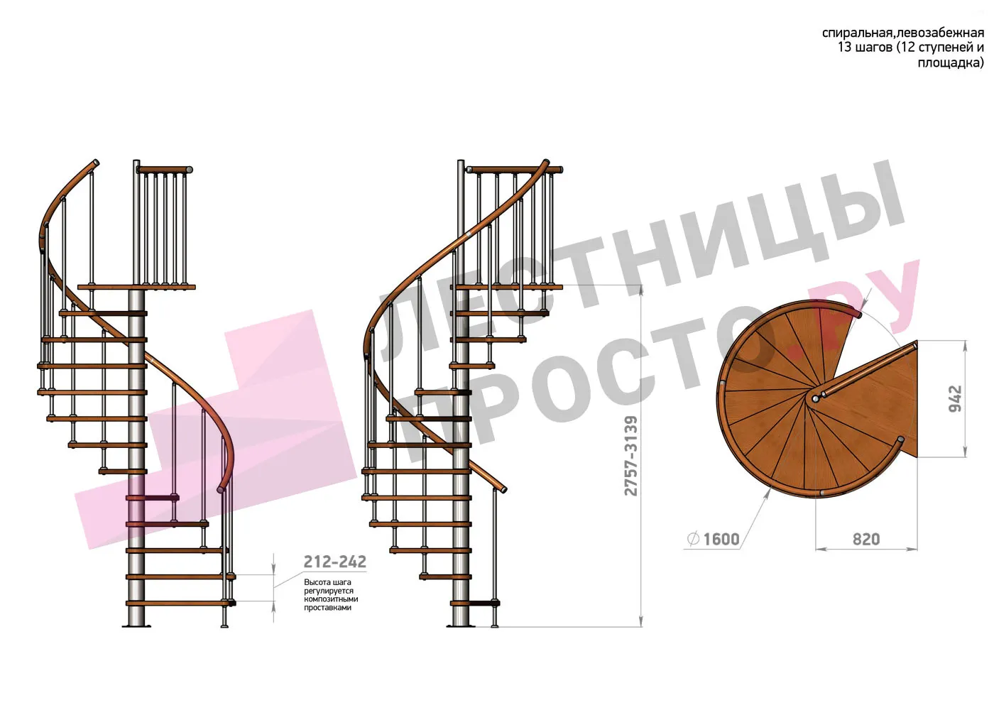 Винтовая лестница Prosto Spiral Black/Высота 2545 - 2898 мм