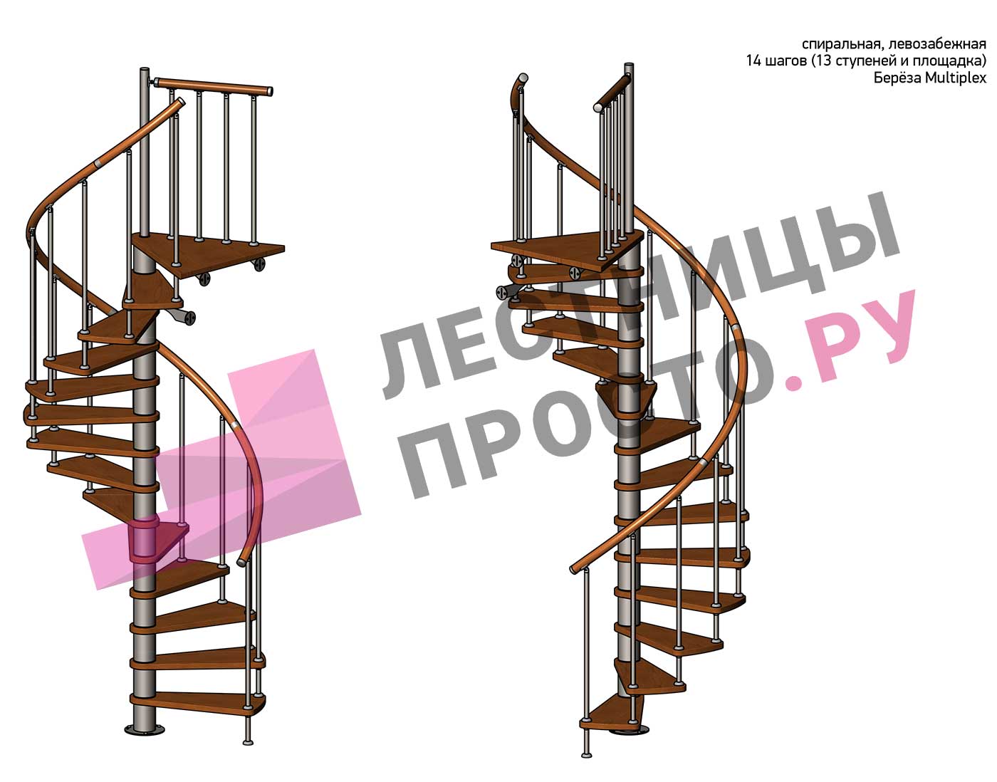 Винтовая лестница Prosto Spiral White D140см, h296.9-338.1 см