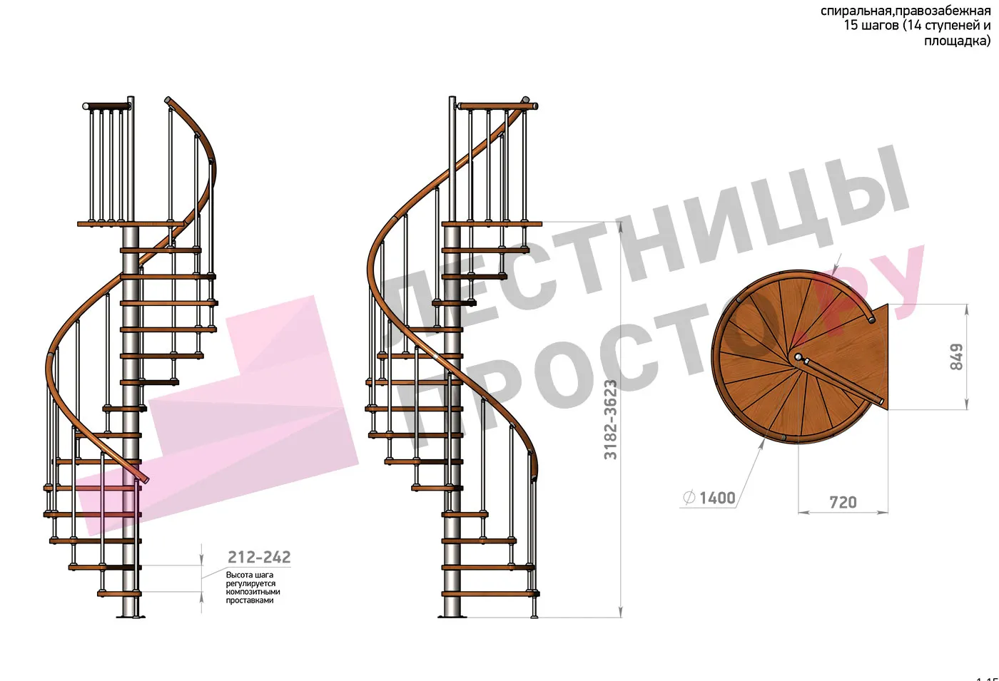 | Винтовая лестница Prosto Spiral White D140см, h318.2-362.3 см |