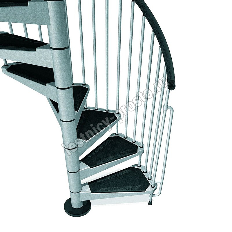 Отделка лестницы всегда в черном цвете. Перила из полиуретана с алюминиевым сердечником черного цвета, как и износостойкие нескользящие панели на ступенях.
