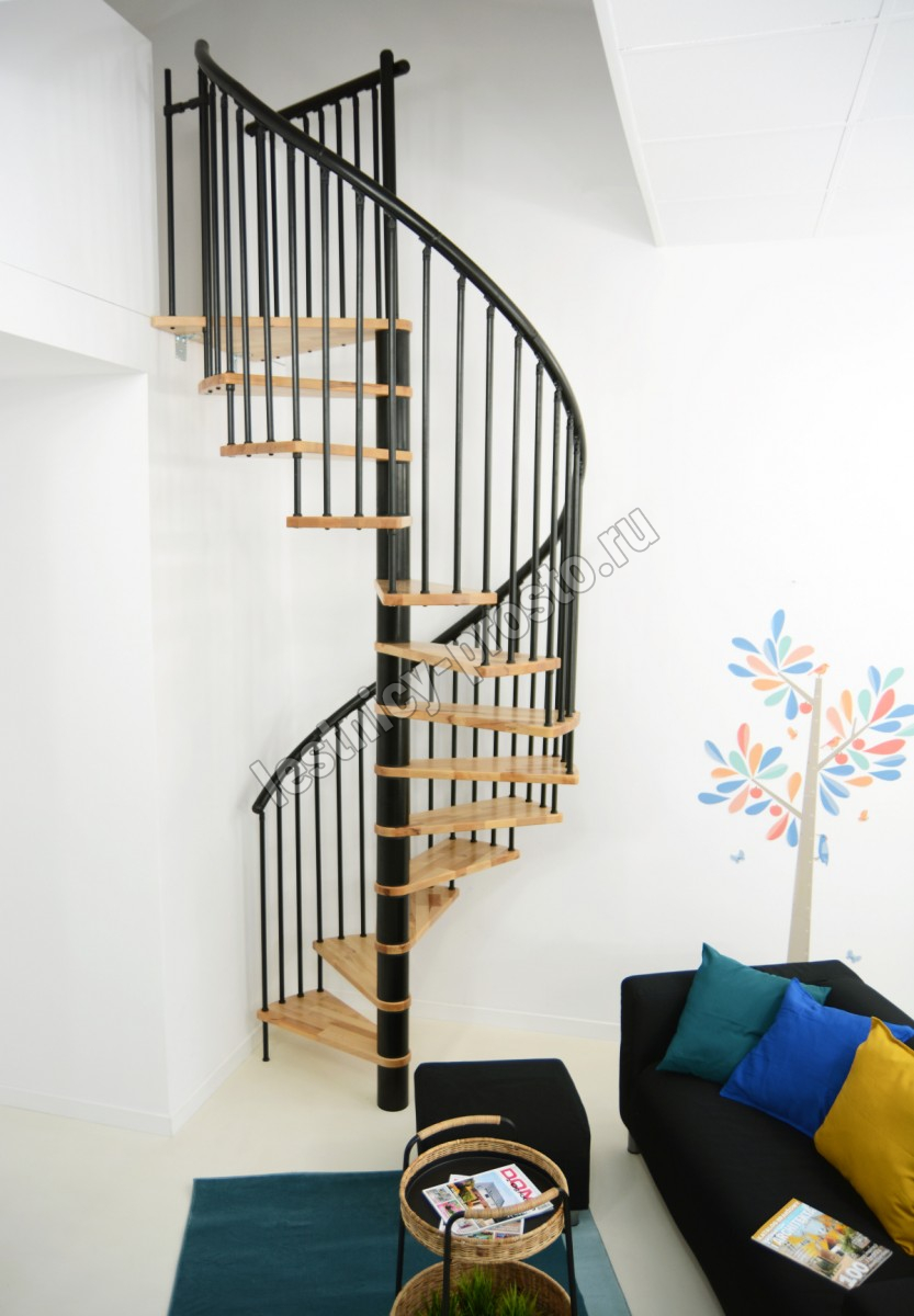 Благодаря возможности регулировать высоту шага с помощью пластиковых вставок (входят в базовый комплект), высоту лестницы можно варьировать в пределах от 2860 до 3090 мм. Кроме того, купив дополнительную секцию для этой лестницы, можно поднять высоту до 3320 мм. Ступени лестницы выполнены из сращенного бука и покрыты износостойким бесцветным лаком. Элементы конструкции, алюминиевые поручни оцинкованы и окрашены порошковым покрытием. Поручень и каркас одного цвета.