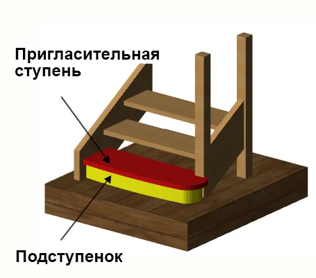Фризовая ступень (подиумная, стартовая) ступень, завершающая лестничный марш. Фризовые ступени могут быть верхними и нижними.