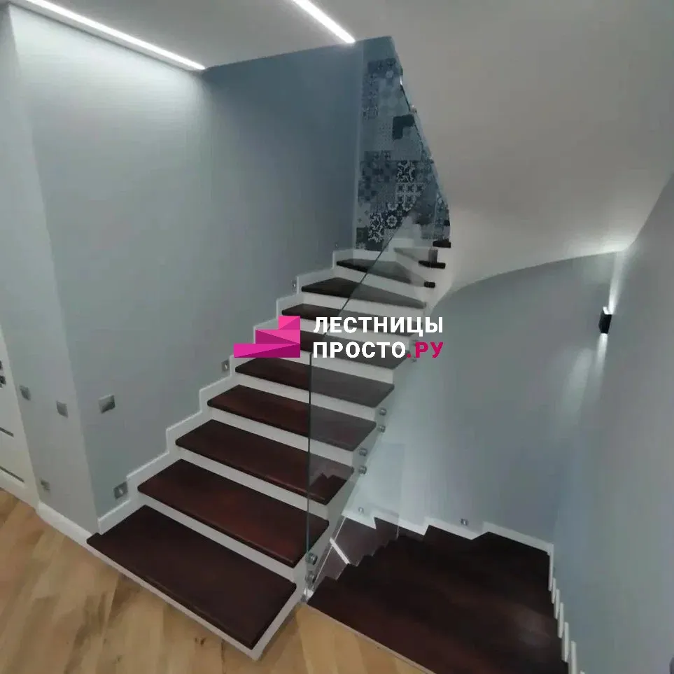 Лестница по индивидуальному проекту со стеклянным ограждением LP-2935